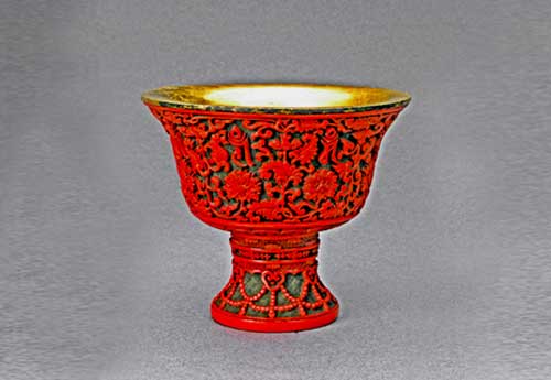 清乾隆剔红缠枝莲纹高足净...