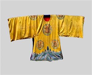 清乾隆黄缎绣金龙泰山神袍