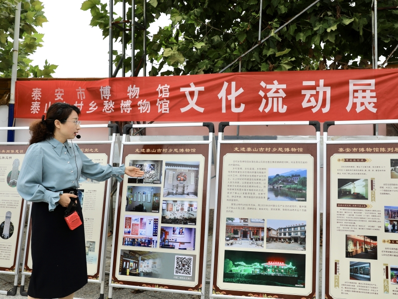 为充分发挥博物馆社教功能,切实推动中华优秀传统文化创造性转化和创新性发展,市博物馆统一制作了《千年岱庙 东岳祖庭》《泰安市博物馆陈列展览集萃》《走进泰山古村乡愁博物馆》《泰安市博物馆石刻之光》《筑牢中华民族共同体意识:古建凝聚民族智慧》《铸牢中华民族共同体意识:碑刻融合民族文明》《筑牢中华民族共同体意识:革命文物弘扬民族正气》以及“学习强国”推介等内容的图文展板, 两家博物馆在大津口村文化广场举办了文化流动展。