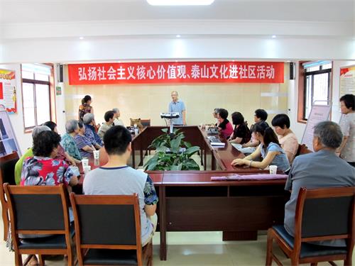 为进一步弘扬主旋律,发挥博物馆的社会教育功能,博物馆组织开展了“弘扬社会主义核心价值观 泰山文化进社区”活动。
