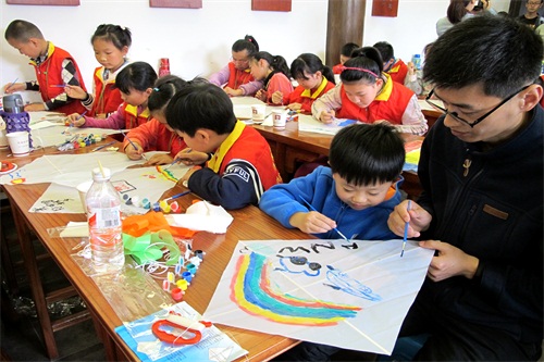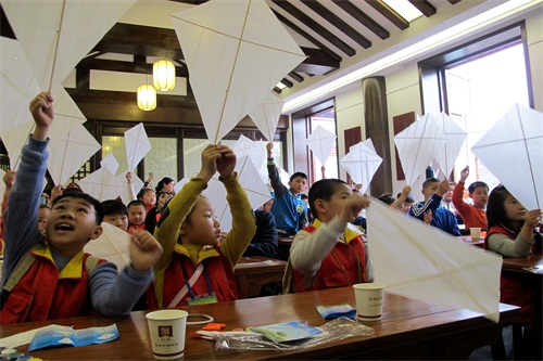 陈玉林老先生多年来致力于风筝艺术的挖掘研究与传承发扬。本次讲座专门制作了针对低年级学生的课件,从风筝的起源、材料、工具、步骤、放风筝的安全等方面系统的向大家进行了介绍,并将耳熟能详的诗歌教给孩子们朗诵。讲座结束后,还亲自教孩子们自己动手制作风筝,让孩子们在制作风筝的过程中体验自由、轻松、和谐的心情和美好祝愿。孩子们热情高涨,在陈爷爷的讲解下,一步一步完成作品,既体验风筝艺术制作所带来的乐趣,又在不知不觉中将这项非物质文化遗产得到传承。