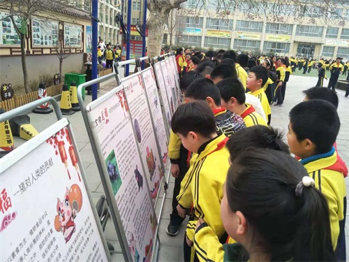为做好这项活动,我馆设计制作了20余块展板,内容从猪灵崇拜、民间猪神崇拜、猪的成语俗语歇后语、、生活中的肖猪文化、诗人笔下的猪、邮票、猪对人类的贡献等方面详细介绍了生肖猪年的来历与相关典故。图文并茂、形式活泼、内容丰富的版面,像磁铁一样吸引着孩子们,激发了他们的好奇心和求知欲。在欣赏中,孩子们学到了书本以外的知识,感受到了中国传统文化的魅力,进一步培养了孩子们热爱祖国传统文化的情感。