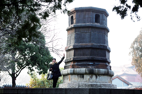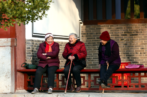岱庙内碑碣林立,古木参天,不少居住在附近 老人会三三两两一起坐在唐槐院内享受温暖的阳光。