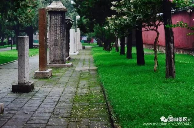 今年夏天雨水多,岱庙也有了红墙晓湿、绿浓花重的味道。