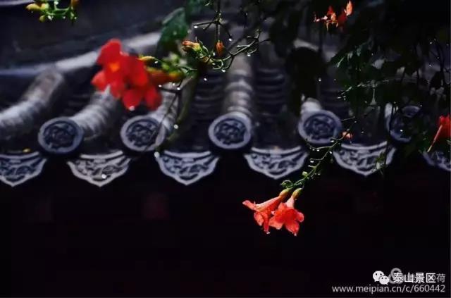 岱庙长夏的主打花就是凌霄了,她那抹亮黄在雨中阴沉的背景下格外鲜亮!