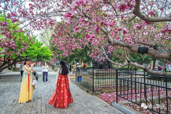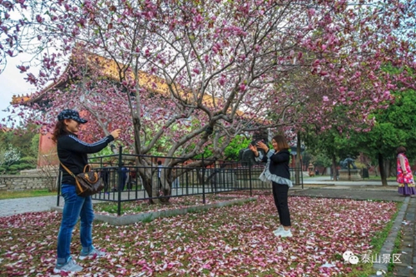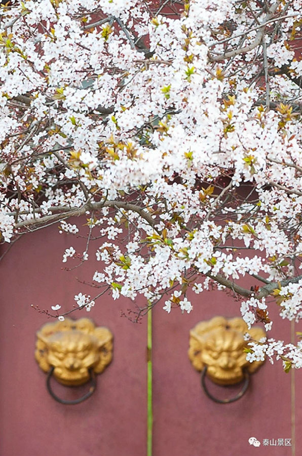 三月繁花似锦,微风不燥,阳光正好。进入岱庙,映入眼帘的是吉祥喜庆的红墙,厚重的黑瓦,彩绘建筑以及红门,不论是遒劲的苍柏,还是千年的银杏, 无处不在的古老气息。春暖花开,俏满枝头,浓浓的春色与岱庙的古朴融为一体,形成独特画卷。世间有太多的美好值得留恋,比如万古不变的青山,春花烂漫的岱庙。