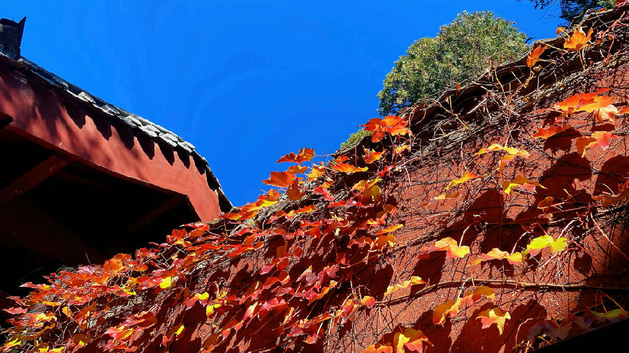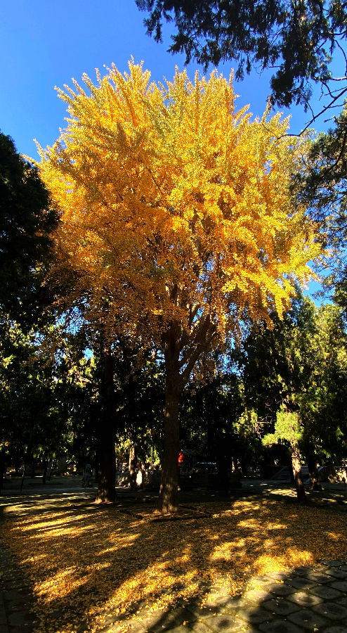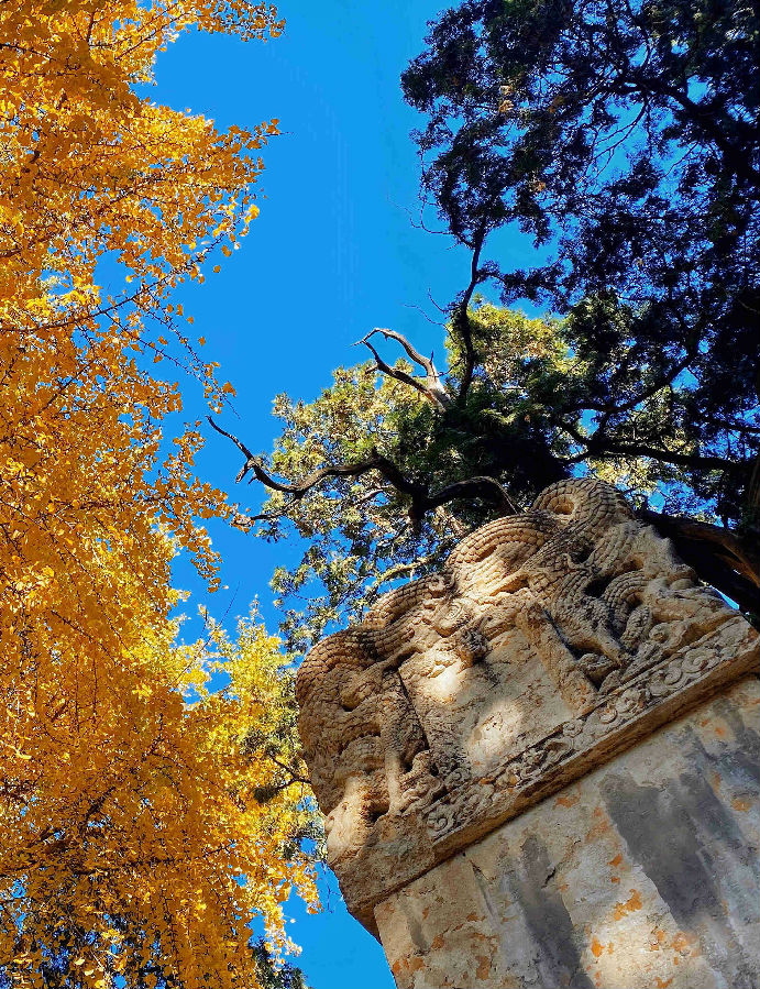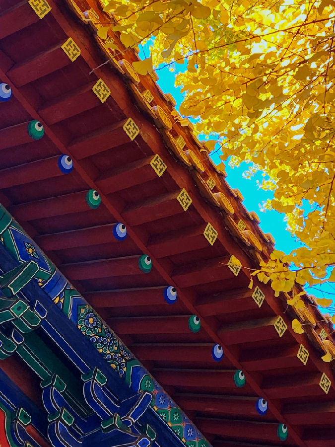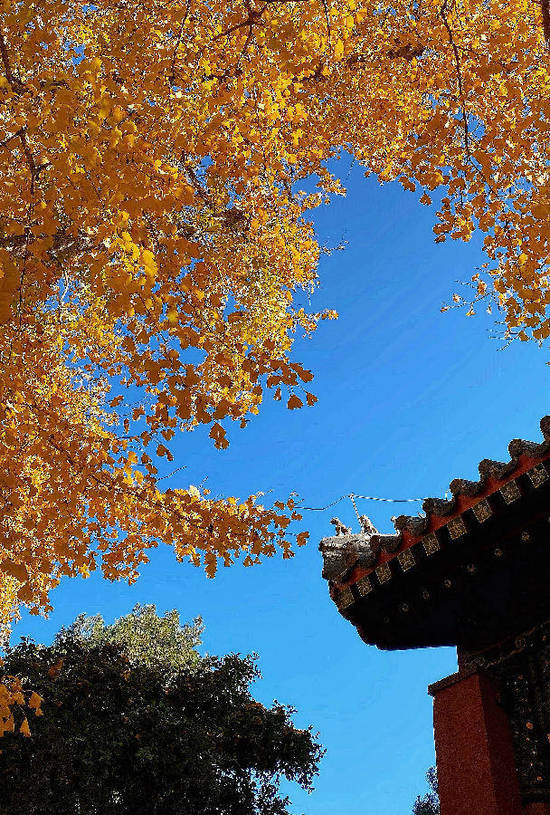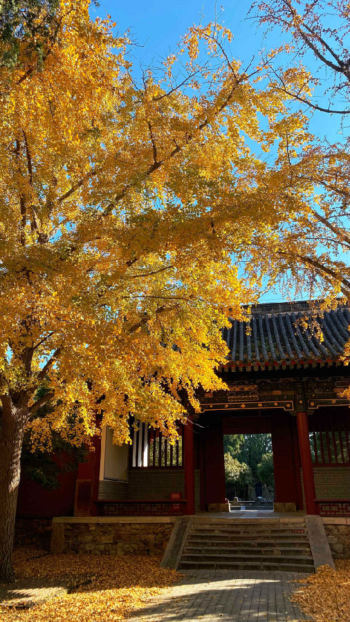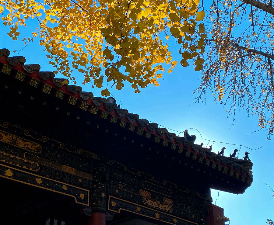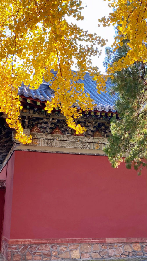 蓝天、红墙、金叶、翠柏……斑斓的色彩,惊艳了时光,渲染了山东泰安岱庙初冬之美。