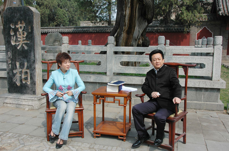 2008年3月31日,中央电视台《艺术人生》栏目组,来岱庙汉柏院拍摄《于丹访谈》节目,著名学者于丹接受了主持人朱军的访问。