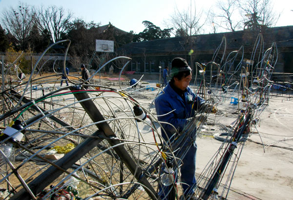 随着2009年春节的临近,岱庙奉献给广大市民的节日精神大餐——迎春灯会的筹备工作已接近尾声。工程人员加班加点,昼夜奋战,现在全部花灯已进入定点位置进行安装,灯会现场已初步呈现。届时将准时与广大市民见面。