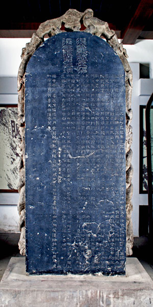 张迁碑,全称《汉故谷城长荡阴令张君表颂》,立于东汉灵帝中平三年(186),为故吏韦萌等为追念张迁功德而刻立。额篆书阴刻二行十二字“汉故谷城长荡阴令张君表颂”。碑文共567字,15行,满行42字,隶书。碑阴刻立碑者41人姓名及出资数,文亦隶书。碑刻立后不久即仆地而被掩埋,明初掘地时发现,立于东平儒学明伦堂前。解放后,于东平县政府院内建亭,立碑于内。1965年移至岱庙保护。