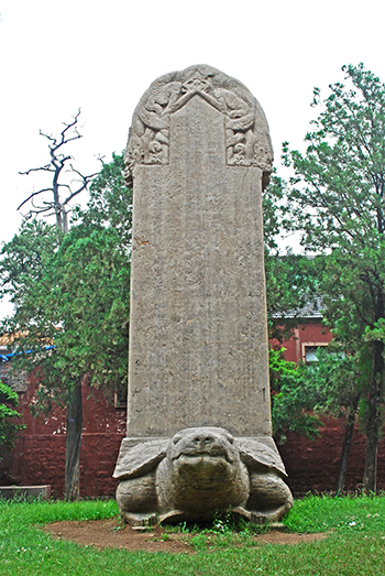全称“大金重修东岳庙之碑”,立于金大定二十二年(1182年),位于岱庙天贶殿东碑台上。该碑螭首龟趺,通高6.6米。碑文详细记载了金大定十八年春岱庙遭受较大火及金世宗重修岱庙的经过。