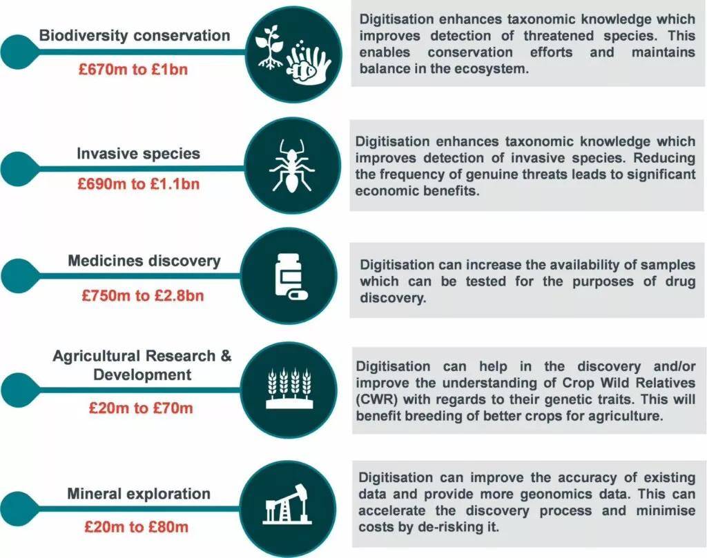 将自然历史博物馆8000万件藏品进行数字化,能创造超过20亿英镑的经济效益,同时可以推动食品安全、生物多样性保护和药物发现等方面的进展。