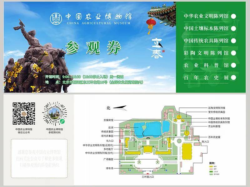 首张“立春节气门票”图案采用的是中国农业博物馆前广场著名的“农林牧副渔”主题雕塑,该雕塑在我国雕塑史上占有重要地位,曾获1987年首届“全国城市雕塑评比最佳奖”。雕塑图案前印有迎春花开、东风燕来,绿色琉璃瓦屋檐灯笼高悬、映衬蓝天,寓意新的一年喜庆吉祥、幸福安康。“立春节气门票”推出后受到了广大观众的热烈欢迎,不少观众通过实地索取、网络留言、电话咨询等形式表达喜爱和收藏意愿。中国农业博物馆衷心感谢大家的参与和支持,欢迎各位观众来馆参观游览!