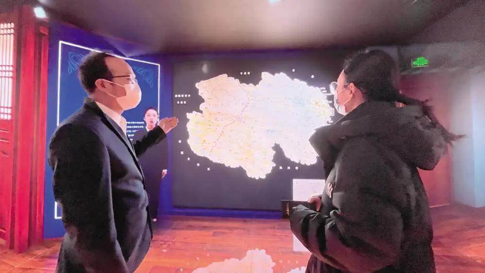 青海省博物馆工作人员向记者介绍数字体验馆亮点与特色。西海全媒体记者 马智尧 摄