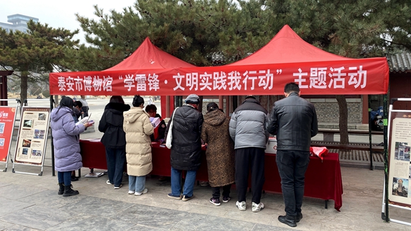 3月5日,泰安市博物馆在岱庙北门开展了“学雷锋•文明实践我行动”主题活动,岱庙新时代文明实践志愿服务队传承弘扬雷锋精神,通过热情周到的旅游服务,为市民、游客营造优美旅游环境,提供优质旅游服务。