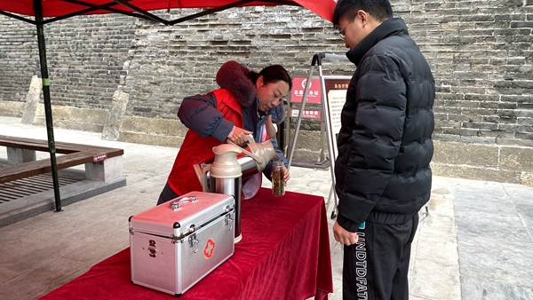 志愿者还热心为游客提供开水、针线包、医疗急救等温馨便民服务,受到游客称赞。