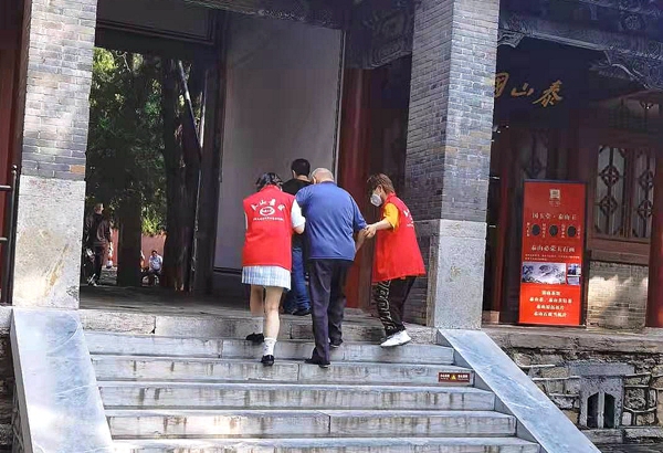 在路面湿滑、台阶险要等位置增加志愿服务人员,解答游客游览中遇到的问题,做好线路引导,及时发现并排除安全隐患。
