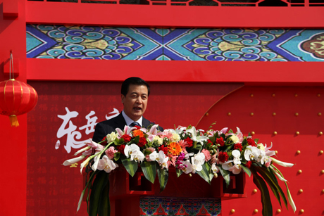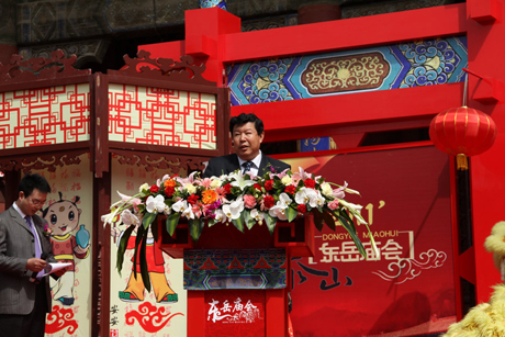 谭主任在致辞中指出:泰山是首例世界文化与自然遗产、世界地质公园、首批国家级风景名胜区、首批全国文明风景旅游区、首批国家5A级旅游景区,被誉为中华历史文化的缩影、中华民族精神的象征。泰山以其有容乃大的气魄,将历史文化、自然景观、民俗信仰完美和谐地融为一体,使其成为历朝历代所尊崇的神山、圣山、国之镇山。起源于唐代的泰山东岳庙会,是国家级非物质文化遗产,具有重要的护国安邦价值、睦邻友好价值、繁荣发展价值、文学艺术价值和文化遗产价值,是泰山文化中最为活跃、最具价值、最有生命力的元素之一。经过1000多年的积淀,泰山东岳庙会构成了独具特色的民俗宗教文化景观,成为辐射全国的东岳信仰的策源地,也为景区传承、弘扬、展示、利用好泰山文化,提供了宝贵的载体。近年来,泰山景区紧紧围绕泰安市委、市政府“建设经济文化强市,打造国际旅游名城”战略部署,牢固树立“严格保护,永续利用,实现科学发展”的指导思想和“把泰山建设成国际知名遗产地和旅游目的地”的工作目标,紧紧抓住泰山文化这一核心优势,按照“打响一个品牌,做大三个产品,形成三大产业”的思路,高端高效运作泰山东岳庙会这个重要的文化产品和产业,取得了显著效果。本届泰山东岳庙会,重点突出“平安、和谐、纳福”主旋律,精心策划了央视一台“寻宝—走进泰山”、泰山东岳庙会国际论坛、台湾东岳庙朝圣、中韩文化交流等丰富多彩的活动,着力打造一场极富泰山特色、凝聚泰山精粹的文化盛会,以期为泰山文化与旅游融合发展、共同繁荣,为中华民族优秀文化永续传承利用,注入新的活力、增添更多动力。