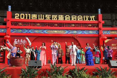 4月17日上午,2011泰山东岳庙会启会仪式在岱庙宋天贶殿大露台隆重举行,中国民俗学会荣誉会长、国家非物质文化遗产评审专家委员会副主任刘魁立,中国民俗学会会长朝戈金,泰安市副市长林华勇,泰山景区管委会主任谭业刚出席启会仪式,国际友人代表德国波恩大学教授白瑞斯,台湾东岳庙代表台南善化东岳殿董事长尤更村等参加了启会活动。