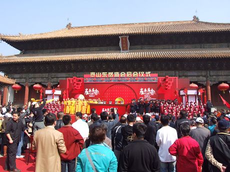 泰山东岳庙会是泰安市重要的文化品牌,是泰山景区着力打造的文化产业项目之一,在海内外的知名度和影响力越来越大。以“登泰山 保平安”和“逛东岳庙会 祈平安福贵”为主题的2010年泰山东岳庙会将于4月28日—5月3日隆重启会。从遥参亭开始,沿着岱庙、红门、中天门、南天门到后石坞这条登山的千年古道 ,20项庙会活动将次第展开。市民的节假日,游客的狂欢节,今年“五一”小长假期间来登山的游人将会沉浸在浓郁的民俗风情中,尽情享受文化的盛宴。