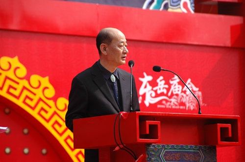 刘德龙在致辞中说,泰山东岳庙会历史悠久,内容丰富,是我国最具有影响力的庙会。泰安市委、市政府对保护这一珍贵的非物质文化遗产高度重视,泰山管理部门对庙会的传承与发展采取了许多切实可行的措施。庙会是广大民众精神生活和物质生活的重要空间,保护非物质文化遗产就是要保护活态的文化空间。近年来,泰山庙会在继承传统的同时,还结合时代特点,逐年融入新的内容,使庙会活动更加多姿多彩。将台湾民俗文化引入泰山庙会,已经成为当今泰山庙会的一个亮点。中韩民俗文化的交流,也成为泰山庙会中的保留项目。在今年的庙会上,我们还可以欣赏到泰山地区极其丰富的非物质文化遗产,切身感受到中华优秀传统文化的博大精深,这使泰山东岳庙会具有了更加广泛的代表性。
