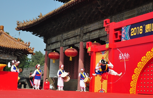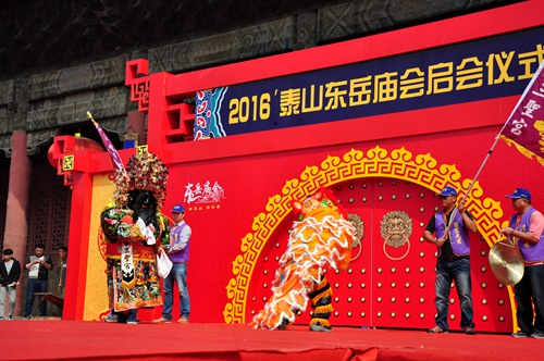 4月21日上午,2016泰山东岳庙会启会仪式在岱庙天贶殿大露台隆重举行。泰安市副市长徐恩虎、泰山景区管委会主任姚霆、山东省台办交往交流处副处长魏章柱、泰安市政府副秘书长于文龙,以及市委、市政府有关部门单位负责人出席启动仪式;中国民俗学会副会长、山东省非物质文化遗产保护工作专家委员会主任刘德龙,国际亚细亚民俗学会韩国支会会长、韩国中大学校传统文化学科教授金京南,国际亚细亚民俗学会韩国支会理事、韩国传统文化大学教育院长柳春圭,国际亚细亚民俗学会韩国支会理事、东国大学校美术学科教授郑炳国,中国国民党中央评议委员王素惠,台南善化东岳殿主委尤耿村,台湾高雄、屏东、善化等县市的信众代表,韩国民俗文化交流团,淄博博山区大桥村香社团等嘉宾,以及中央、省市各级媒体记者参加启会仪式相关活动。