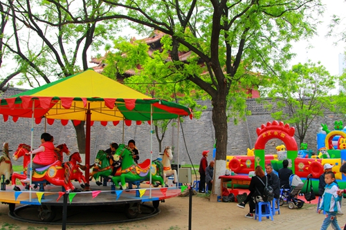 唐槐院亲子园,儿童城堡、动漫等儿童体验项目以及精心设计的亲子游戏,让逛庙会的家长与孩子在此欢快互动,尽情玩耍。