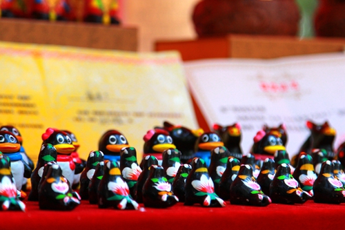 仁安门下,色彩艳丽的面泥在老艺人手中经过捏、搓、揉等工序后脱手而成,栩栩如生、萌动可爱的各色艺术形象便展现在大家眼前。在这个区域,展示了剪纸、刺绣、木雕、泥塑、锯壶等泰山周边地区传统手工艺项目,让游客和市民在此体味到具有浓厚乡土气息、民味十足的民间艺术品。