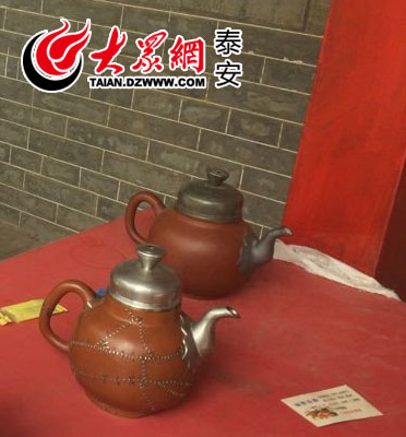 已经被锔好的茶壶。(记者 张冉 摄影报道)