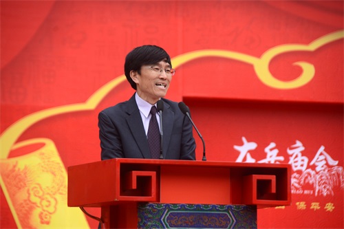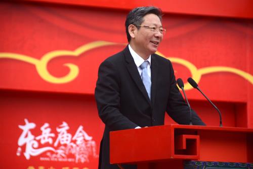 泰山景区管委会主任王光锋、中国民俗学会会长、中国社科院研究员叶涛、台湾屏东三圣宫信众代表陈福利分别致辞。