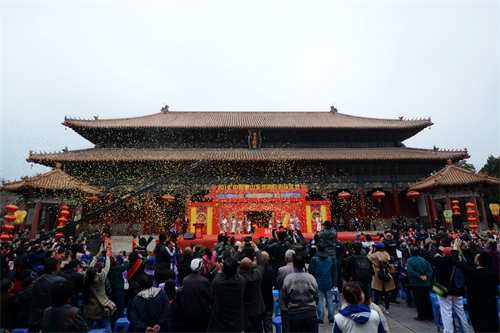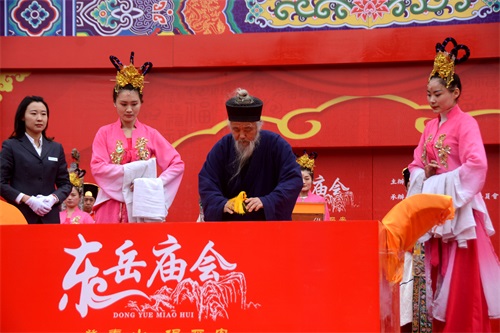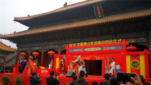 2019年4月19日, 一年一度的泰山东岳庙会在岱庙天贶殿大露台隆重启会。泰安市副市长成丽,泰山景区管委会主任王光锋,中国民俗学会会长、中国社科院研究员叶涛,国家体育总局体育文化发展中心主任崔乐泉、山东省委台港澳办调研员李毅,泰安市政府副秘书长田萌等领导、嘉宾出席启会仪式。来自台湾台南善化东岳殿、屏东三圣宫、彰化玉皇宫等宫庙信众代表,以及中央、省、市各级媒体记者参加了庙会相关活动。
