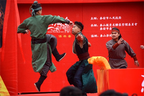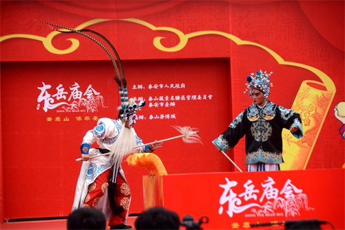一年一度的泰山东岳庙会,是民众朝山进香最重要的文化空间。正是因为有庙会的存在,才使民众的泰山信仰有了时间的保证,也为泰山众多的非物质文化遗产项目提供了表演和传承的空间。2008年,泰山东岳庙会入选国家级非物质文化遗产名录,这是对泰山庙会在传承优秀传统文化方面所起到的作用给予的充分肯定。