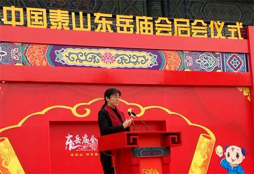 启会仪式上,泰安市副市长成丽宣布2017泰山东岳庙会启会。