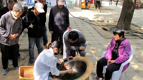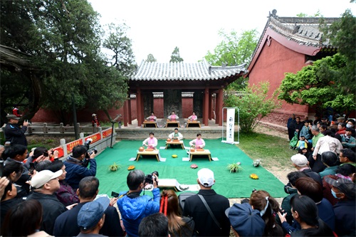 本届庙会上的泰山茶博会项目得到了泰山茶叶行业协会、泰山茶博城的大力支持,南北各式茶庄50余家在此处集中展示。炒茶技艺、斗茶擂台、禅修茶道等茶艺表演让游客了解茶知识、品茗听曲,从中感受古老而优秀的中华茶道艺术。