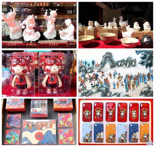 文创产品展示区域,汇集了泰安各地特色旅游商品、纪念品。近几年文创产品的火爆,吸足了人们的眼球,公众也深深感受到了文创产品的魅力。本届庙会上,四喜童子、封禅帝王等带有泰山地方特色的文创产品也登台亮相,吸引了不少游客关注。