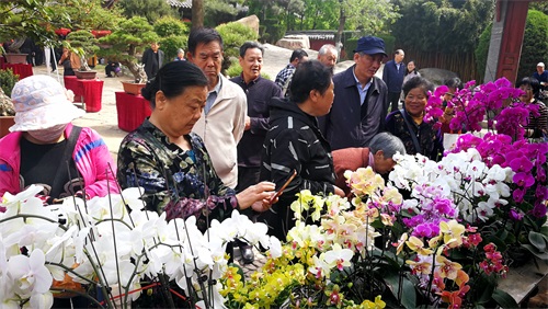 在雨花道院,举办了泰山盆景根艺花卉展,形态各异、造型奇特的根雕盆景及清新淡雅、端庄秀丽的兰花,吸引了不少爱好者来此欣赏和交流。