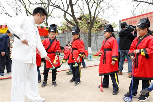 雨花道院古代捶丸场景再现场地,与会专家代表们与泰安市捶丸院文化传媒有限公司组织的孩子们共同开展了捶丸友谊比赛。