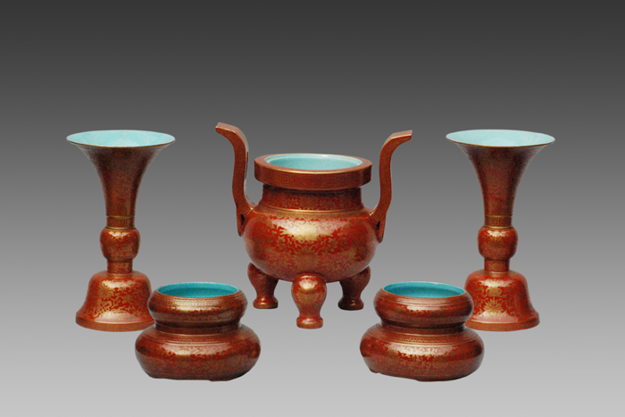 珊瑚釉描金五供