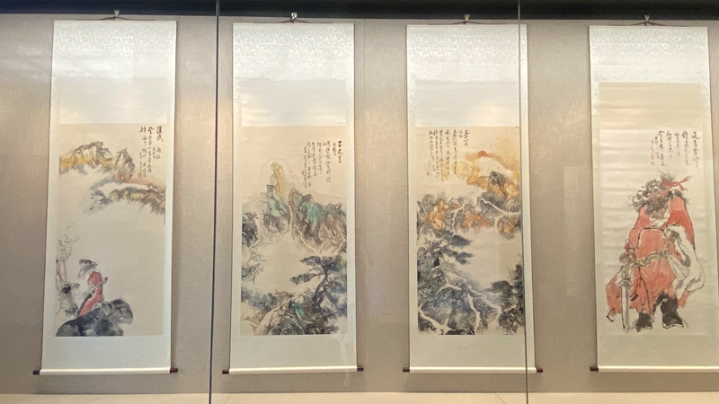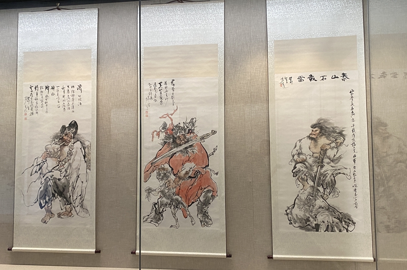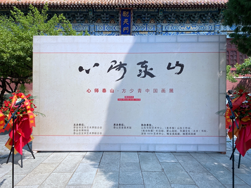 方少青担风袖月,携一支笔,飘然而来。居于岱下,乘醉挥洒,画出这个展来,气势磅礴,笔墨灵动,山水人物,栩栩在目。
