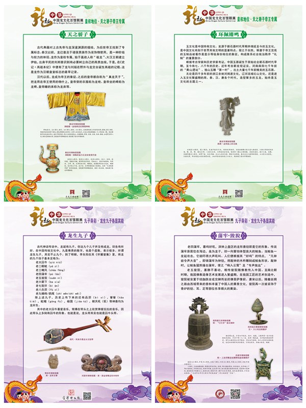 为迎接农历甲辰龙年的到来,增添节日喜庆氛围,由南阳唐王府博物馆和泰安市博物馆联合全国各地文博机构,以龙为主题,组织《龙起中华》-中国龙文化百馆联展,选取来自全国各地博物馆馆藏文物300余件,以图文形式展出,使全国观众对中国龙有一个全面、系统的了解,同贺新春佳节的到来。