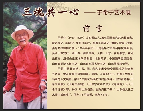 于希宁是具有诗、书、画、印和美术史论全面修养的学者型艺术家,他在绘画中强调国魂、画魂、人魂的统一,拓宽了传统花鸟画的人文境界,达到了中国花鸟画艺术的新高峰。他的著述有《于希宁画集》、《于希宁画辑》、《于希宁花卉技法》、《论画梅》及《于希宁诗稿》等。2007年山东省委、省政府授予其“山东省文化艺术终生成就奖”。