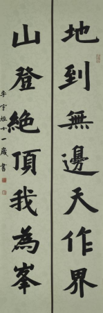 漫步展厅,大字书法作品各美其美、美美与共。从名家联语到“国泰民安”的庄重寄愿,从篆籀古意到少年作者的纯真笔墨——每一幅都是对泰山文脉的深情致敬。特邀专家与学院力量交相辉映,薪火传承板块更以童真视角点亮未来。