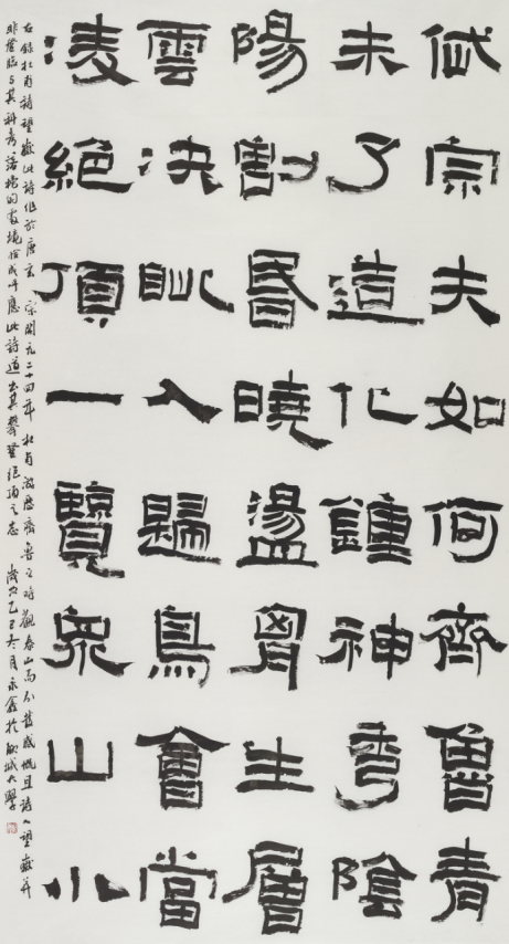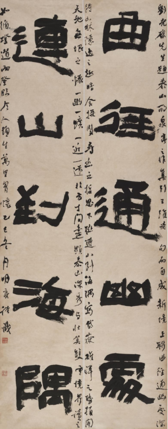本次入选作品展,以文物守护、书道传薪为精神内核,植根泰山世界自然与文化双遗产之厚壤,承续经石峪摩崖刻石“大字鼻祖”之千古风骨,自全国应征佳作中精择四十件精品汇展于此。参展诸作,皆以泰山诗文、家国襟怀、文化颂赞为题,篆隶楷行草五体纷呈,风格气象万千:笔墨沉雄苍劲,章法雍容典雅,既守泰山摩崖大字之古拙神韵,又融当代书家之艺术襟抱,文心与墨韵相融,风骨与意趣共生。