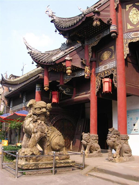 看门的石狮子的摆放是有规矩的。一般来说,都是一雄一雌,成双成对的,而且一般都是左雄右雌,符合中国传统男左女右的阴阳哲学。放在门口左侧的雄狮一般都雕成右前爪玩弄绣球或者两前爪之间方一个绣球;门口右侧雌狮则雕成左前爪抚摸幼狮或者两前爪之间卧一幼狮。