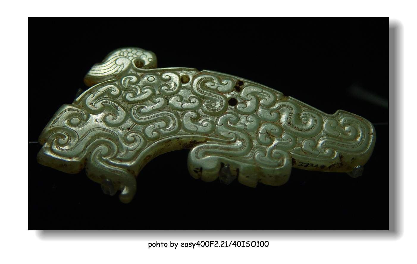 在青铜器物上,在日常生活用品上,云纹在春秋战国时候就已经演绎的相当繁华了,但是在玉器上受到工艺的限制,表现手法上相应的偏延迟,在玉器上为了表现云纹,开始产生了一种新工艺,战国时期开始有了蒲格纹,作为谷云纹的开始,先打好格子,再做云纹,因为工艺的必须而产生出的蒲格纹,但是,从战国出土的玉器中,几乎见不到单独雕琢成蒲格纹的玉器,还是“谷云纹”为主流,那么从战国后期开始出现的“谷云纹”,经过秦再到西汉,在西汉后期演变及至衰落,谷云纹走完了一个历史过程,也正是仙家思想从开始到蔓延和产生的过程;