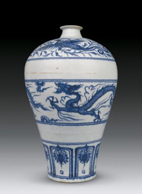 梅瓶,作为一种具有储酒实用、陈设装饰、明器陪葬等多重用途的器物,从唐代开始出现时就已受到人们的喜爱,到宋代时已很流行,元明时期随着青花瓷器的成熟而日趋风行。