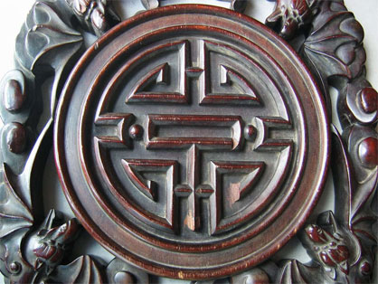 在中国的传统文化中,因蝙蝠的“蝠”与“福”同音,所以人们往往绘蝙蝠为图,象征好运和幸福。这种吉祥的图案在铜镜、瓷器、剪纸、绘画等不同类型的作品中,大有所现。