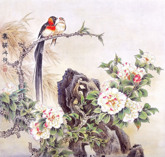 纵观画史,作为中国传统绘画的一个重要组成部分的花鸟画,以其特有的“寓兴”、“抒情”感发素质,通过比兴等与人发生联系,寄予和表达感情,不单是要描绘自然结构规律,关键是要借此表现生命的神韵。传统的花鸟画创作离不开石头,花鸟画与石文化结下了不解之缘。